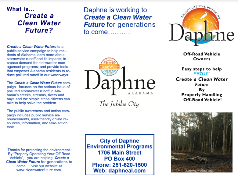 Off-Road Vehicle Owners. Easy steps to help you Create A Clean Water Future by properly handling off-road vehicles!
