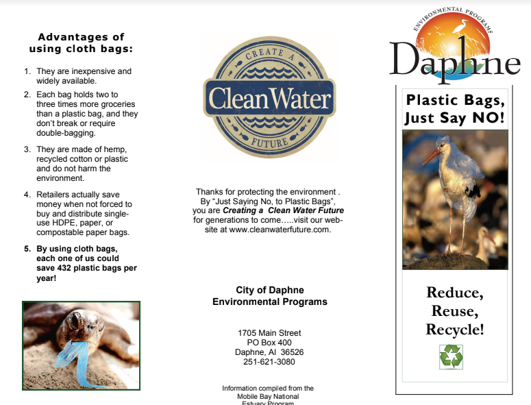 In a rainy place like the Gulf coast, litter and plastic debris is easily washed into storm drains and from there into our streams, bay and Gulf. Making sure our trash gets into trash cans to be processed by city services, helps keep our water clean.
