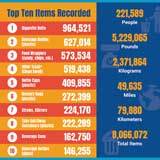 Over the 35 history of the International Coastal Cleanup, volunteers have removed over 344,521,233 Pounds of litter from beaches and waterways around the world. The top-ten list of items removed includes items like plastics bottles, plastic bottle caps, aluminum cans, cigarette butts, derelict fishing gear and a range of disposable plastic goods and food packaging. (Ocean Conservancy, 2021)