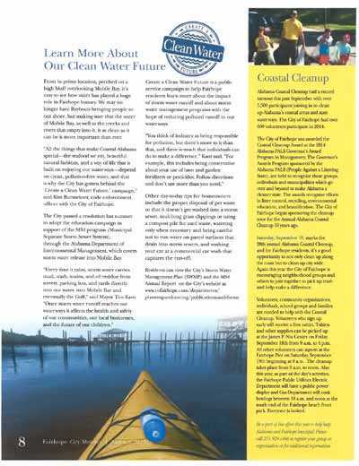 Posted on May 25, 2015 in AdvertisementsIn 2015, the City of Fairhope featured the Clean Water Future campaign in their City Sketches magazine.