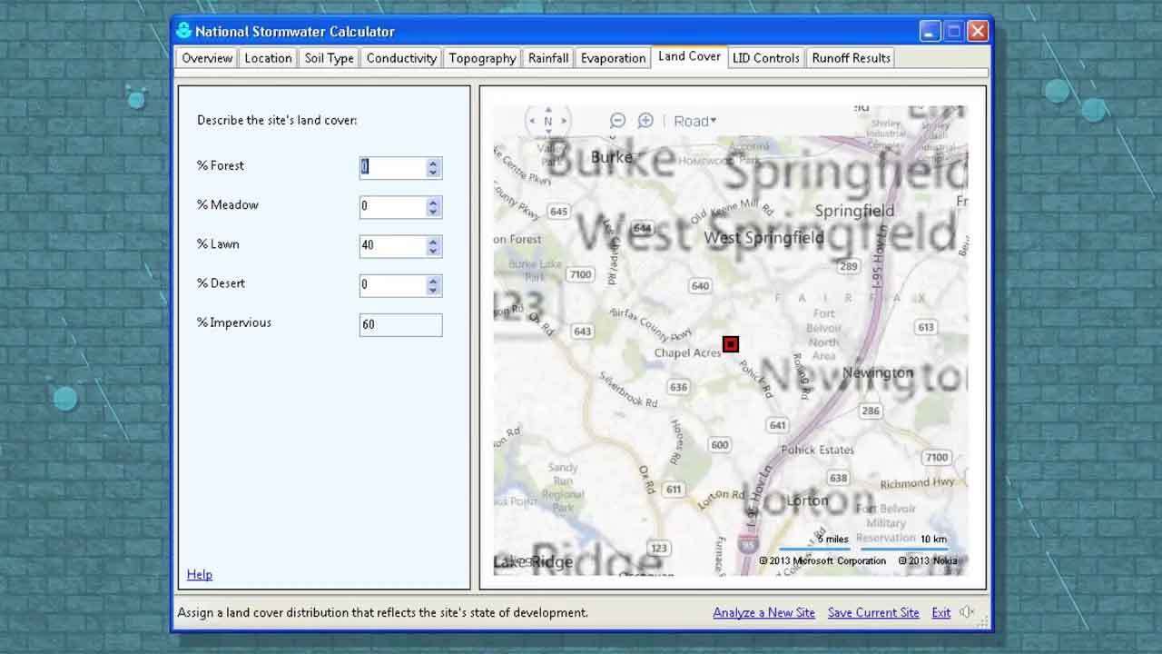 Posted on Nov 17, 2014 in CalculatorsThe Calculator accesses several national databases that provide soil, topography, rainfall, and evaporation information for the chosen site. The user supplies information about the site's land cover and selects the types of low impact development (LID) controls they would like to use. Application for windows.